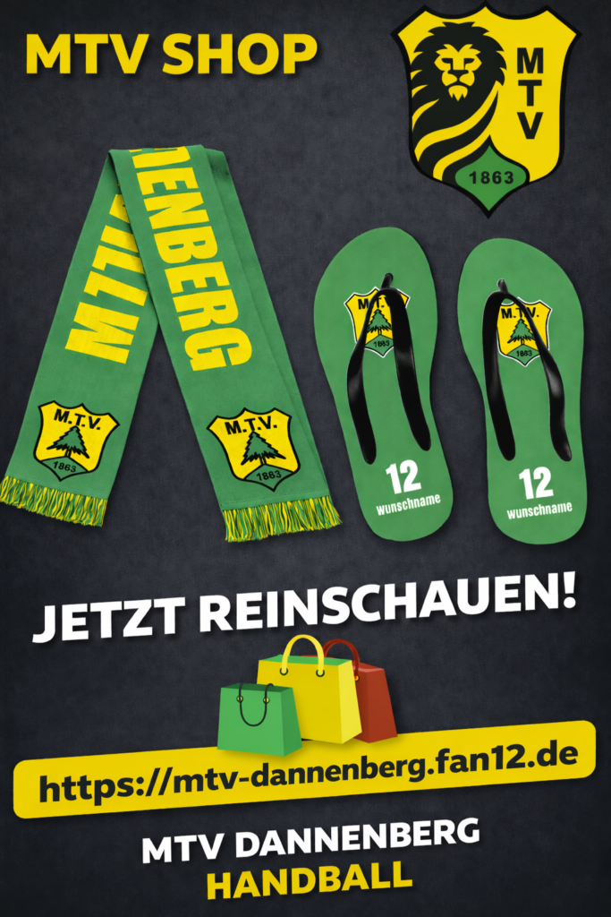 Echte MTV-Fans zeigen Flagge! In unserem offiziellen Fanshop des MTV Dannenberg findest du alles, was dein Handballherz höher schlagen lässt – von grünen und gelben Trikots über Trainingskleidung bis hin zu stylischen Accessoires.